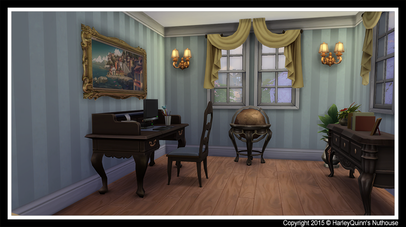I have always loved this lot in Sims 2, and decided it would be a fun challenge to recreate in Sims 4. The lot is a 5 bedroom and 4 bathroom home. I made some minor changes from the original to better suit the needs of a large family. I closed off the one room in the 3rd floor to make that into a master bedroom suite. The home already had two sitting areas that were quite large, so I didn't see a need for a third. I also changed the siding on the exterior, as the white was just to blah in this game. I think the blue looks rather nice, and a lovely touch to the home. As for the rest, it is as close to the original as possible. The lot is fully furnished, sits on a 40 x 30 lot, and values at §267,528